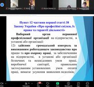 В рамках циклу навчань для голів первинних профспілкових організацій, які були вперше обрані на ці посади, відбувся черговий онлайн семінар. Цього разу його тема – «Громадський контроль за додержанням законодавства про охорону праці». Учасники були ознайомлені з основними формами громадського контролю за додержанням роботодавцем законодавства про охорону праці, створенням безпечних і не шкідливих умов праці, належного виробничого побуту для працівників, своєчасним забезпеченням їх відповідними засобами колективного та індивідуального захисту, профілактичним харчуванням, а також правовими підставами для організації та здійснення цього контролю. Також розглядались нові нормативно-правові акти з питань оплати праці працівників сфери ОЗ, зміни до ведення військового обліку та БПР.